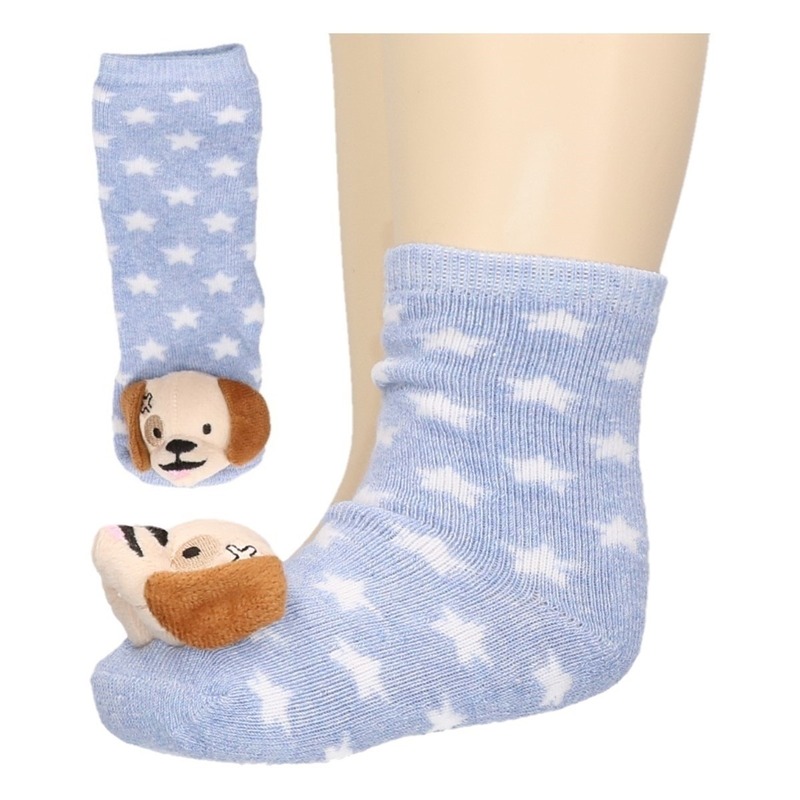 Baby huissokjes/slofsokjes blauw met hondje