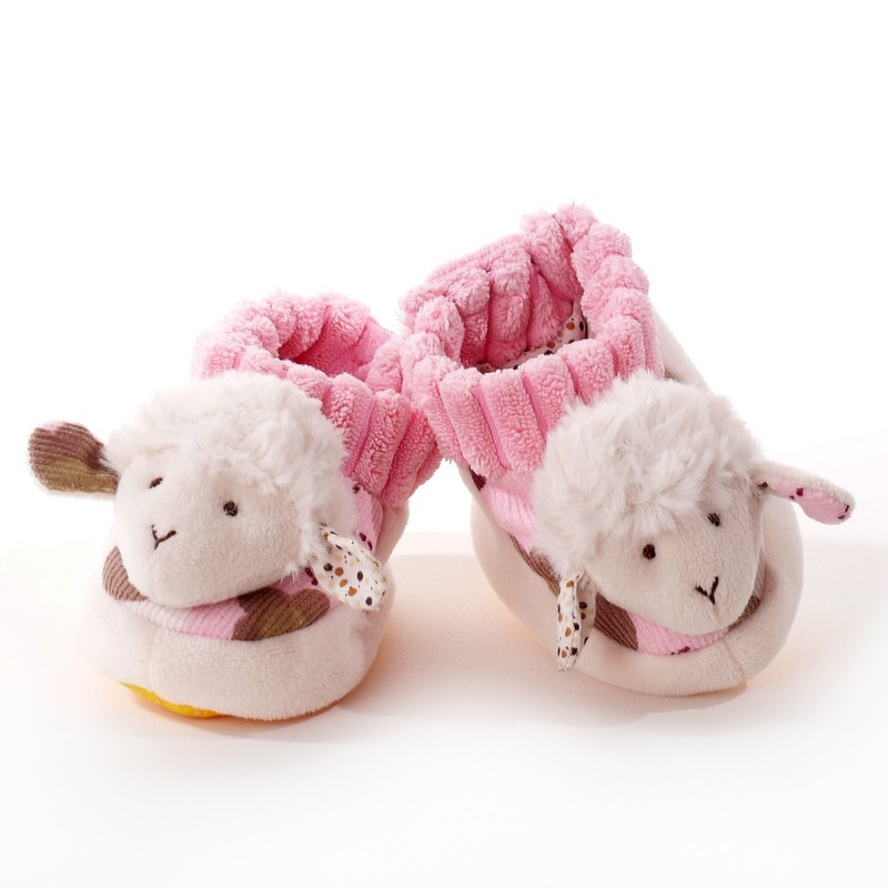 Babyslofjes wit/roze schaap 0-10 maanden. Dit zijn witte schaapjes met roze accenten. Deze comfortabele pluche babyslofjes zijn gemaakt van 70% polyester en 30% kantoen. Geschikt voor babys van ongeveer 0 tot 10 maanden. Wasbaar tot 30 graden.